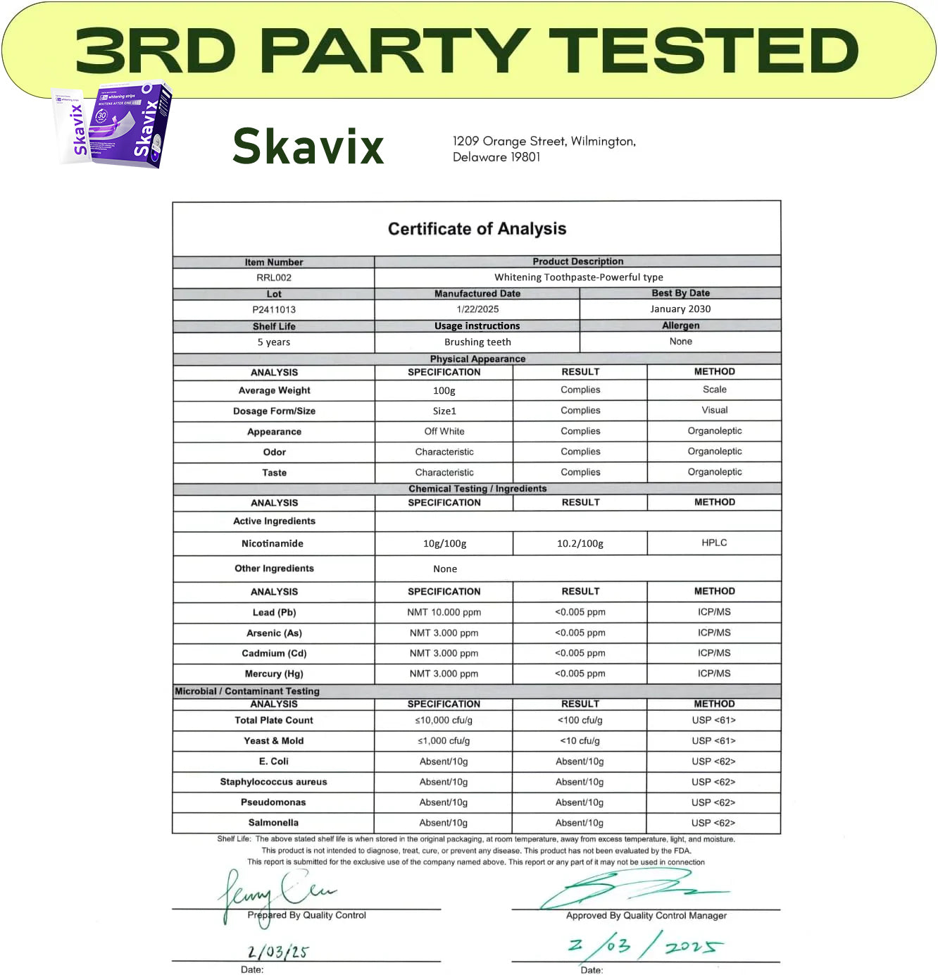 Sale ending inSkavix V36 Whitening Strips have undergone rigorous third - party testing, and the results are in – they meet the highest standards of qality.